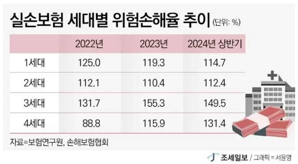2023년 상반기 기준 실손보험 손해율은 118.5%로, 보험사가 받은 보험료보다 더 많은 보험금을 지급한 상황입니다. 특히 3세대는 149.5%, 4세대는 131.4%로 적자 폭이 커졌습니다.