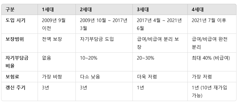 1세대는 평균 2%대, 2세대는 6%대, 3세대는 20%대, 4세대는 약 13% 인상이 예정되어 있습니다. 이러한 변화는 가입 상품의 조건에 따라 실제 갱신 시점에 개인별로 다르게 적용됩니다.